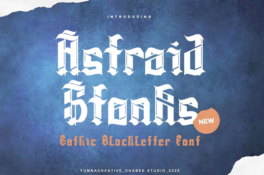 Astraid Stonks Font Gothic Blackletter Font is a bold blackletter fraktur display font that merges traditional Gothic aesthetics with modern impact. Its intricate letterforms feature sharp angles, dramatic strokes, and striking contrasts, embodying strength, authority, and historical charm. The bold weight enhances its commanding presence, making it ideal for designs that demand attention and sophistication