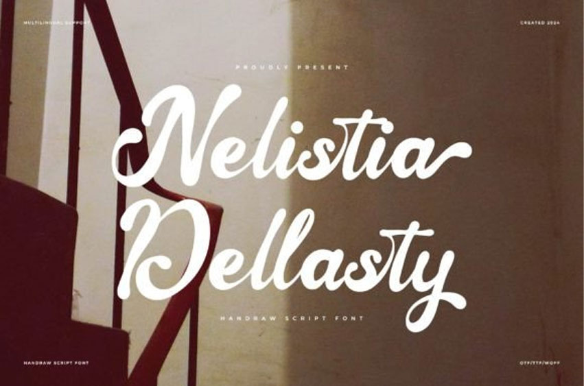 Nelistia Dellasty Font is a beautiful hand-drawn script font with elegant, flowing letters. It’s perfect for creating stylish designs, like invitations, logos, or greeting cards.